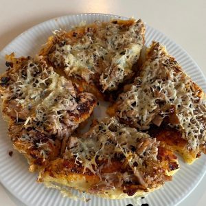 Bu pizza tam 64 gr protein içeriyor😃🍚🍕 Malzemeler: -150g (çiğ gramaj) pirinç-2 yumurta (L)-Yağsız (suda) ton balığı (net ...